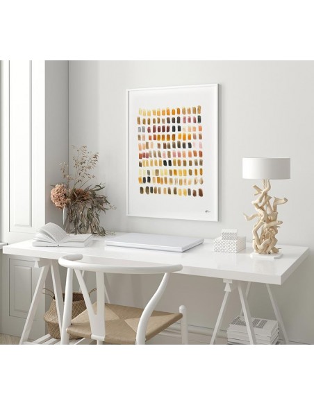 Diseño abstracto basado en pinceladas únicas con diversidad cromática entorno a tonos neutros y cálidos. Reproducción de la obra original de Marta Castet Bellocq. Disponibles en diferentes tamaños y acabados. Perfecto para combinar con otros diseños de la artista.