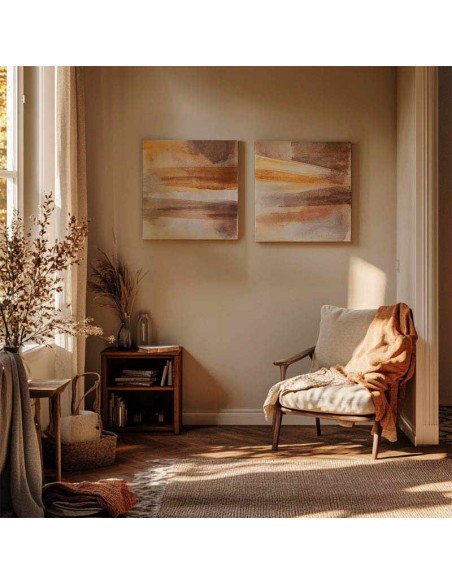 Una pareja de cuadros que se integra fácilmente en diferentes ambientes, desde los más modernos hasta los más clásicos, aportando un toque de calidez y serenidad a cualquier espacio.