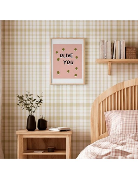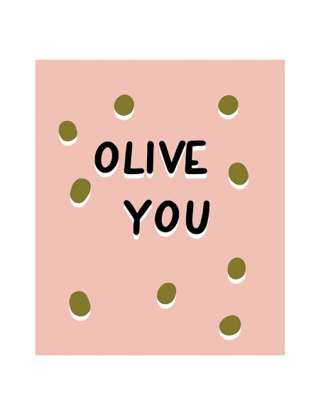 Ilustración "Olive You" con una fondo rosa suave cuenta con un mensaje divertido y lleno de personalidad: "OLIVE YOU", un juego de palabras con "olive" (aceituna) en lugar de "I love you" (te quiero).