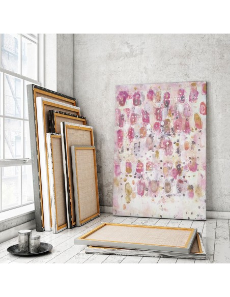 La composición de manchas rosas sobre el lienzo conforma un diseño único que aporta distinción.Decora tu casa con la reproducción de la obra de Marta Castet Bellocq