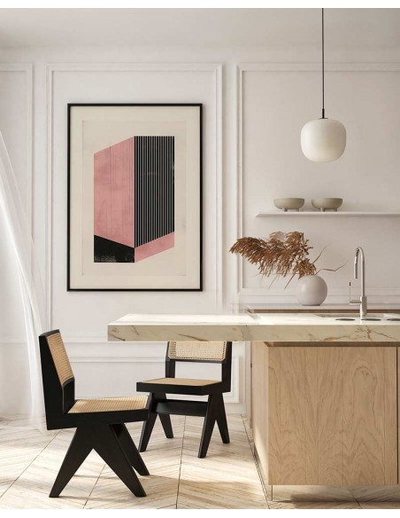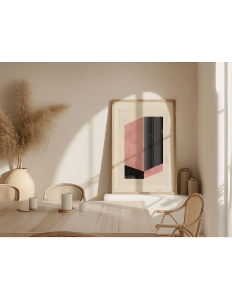 Abstracto de líneas y formas formando diferentes planos. Unos lisos y otros de rayas creando un efecto tridimensional en la imagen. Un diseño elegante para ambientes serenos. Disponible en varios tamaños y varios acabados.