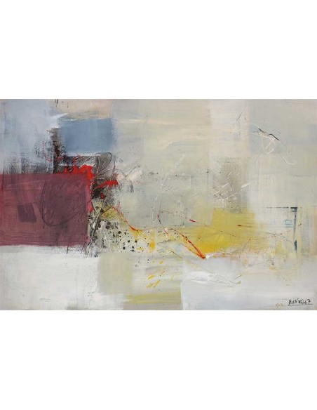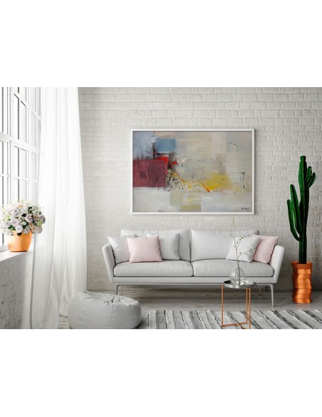 Cuadro abstracto con distintas formas y colores, obra del artista Bruno Vázquez. Disponible en varios tamaños y acabados