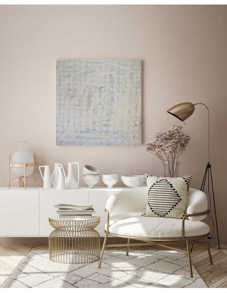 Abstracto en tonos blanquecinos, reproducción original de la obra de Elena Camacho. Disponible en varios acabados y medidas.