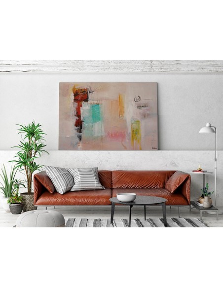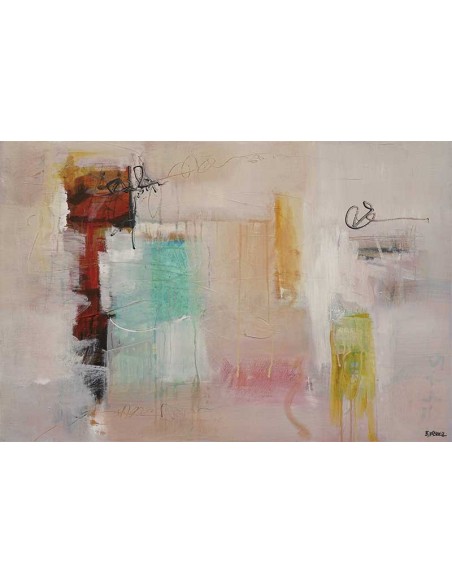 Cuadro abstracto con distintas formas y colores, obra del artista Bruno Vázquez. Disponible en varios tamaños y acabados