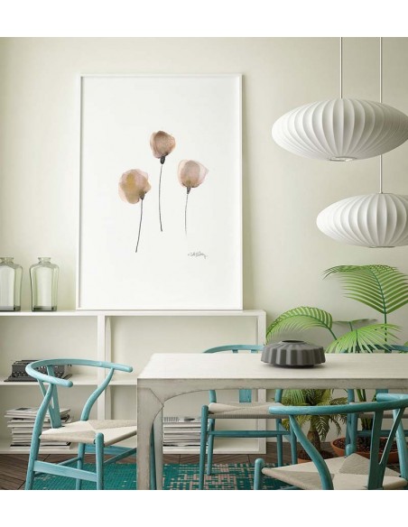 Reproducción de la obra original de Marta Castet Bellocq inpirada en delicadeza de las amapolas. Disponibles en diferentes tamaños y acabados. Perfecto para combinar con otros diseños de la artista.