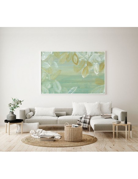 Cuadro de hojas etéreas en tonos verdes y beige. Reproducción del cuadro original de Marta Castet Bellocq