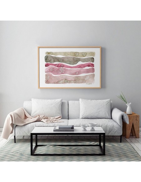 Diseño abstracto de ondas en tonos rosas y beige. Reproducción de la obra de María Peletier.