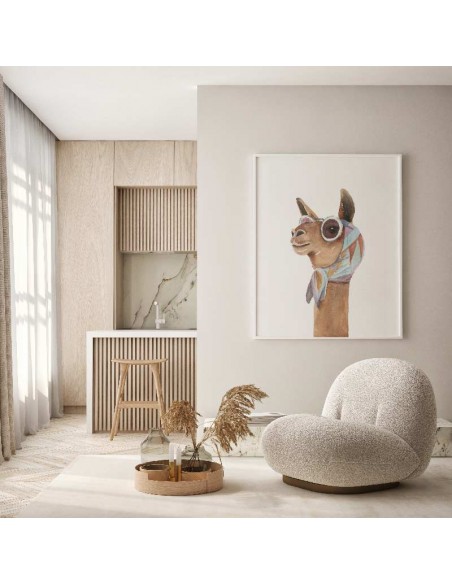 Sofisticada y elegante camella con pañuelo y grandes gafas de sol. Un diseño de César Ortiz Echagüe para los amantes de los animales