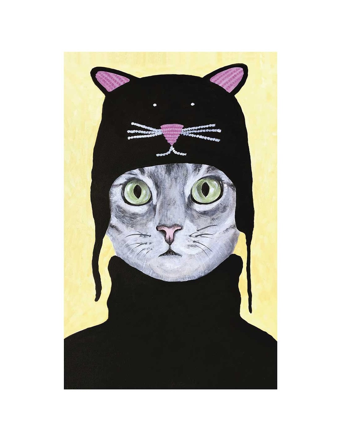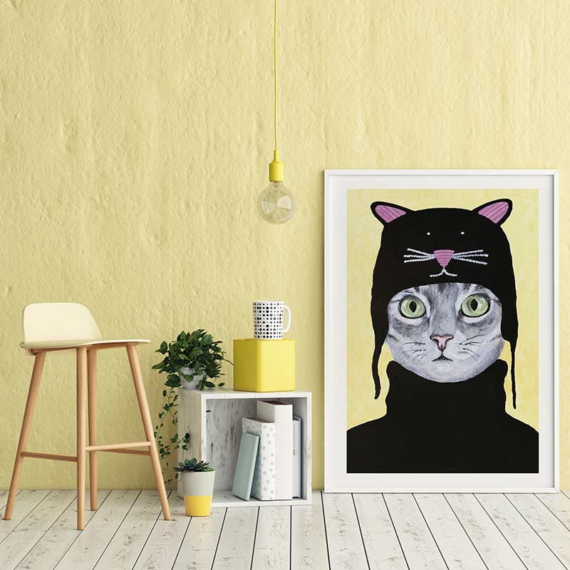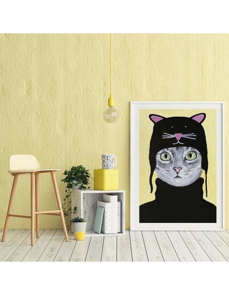 Reproducción de la obra original Cat With Cat Hat de Coco de Paris. Una ilustración divertida de un gato customizado. Disponibles en diferentes tamaños y acabados. Ideal para combinar con otros diseños del artista.