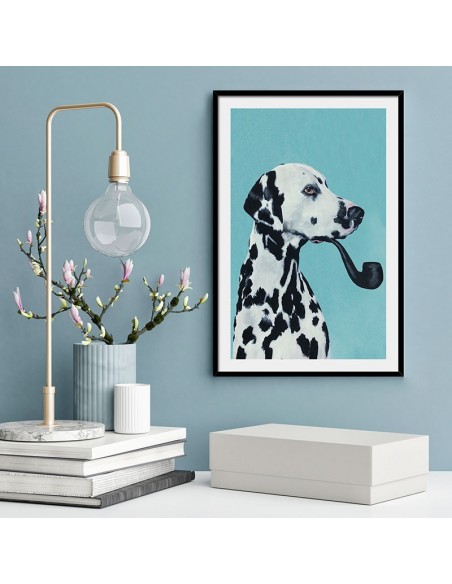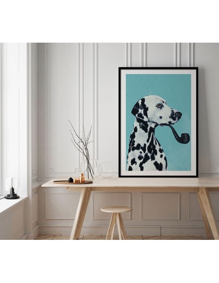 Divertida imagen de dálmata de perfil fumando en pipa. Una reproducción del diseño original de Coco de Paris. Si te gustan los animales este cuadro es perfecto para ti.