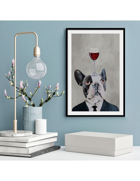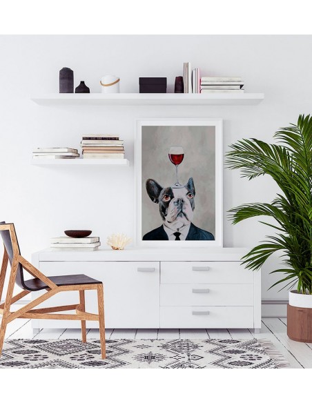 Si te gustan los animales te encantará esta colección de animales de animales de Coco de Paris. Cuadro de perro con copa de vino en equilibrio. Disponible en varios tamaños