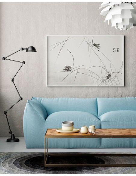 Grillos entre ramas finas. Cuadro de tonos suaves