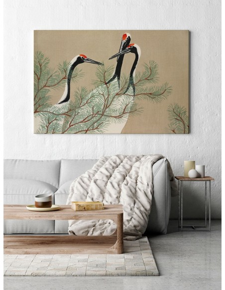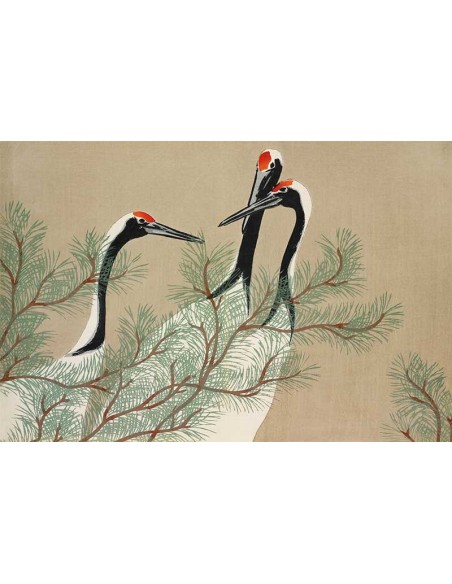 Diseño de tres grullas blancas de cuello negro y corona roja