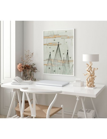 Diseño impreso sobre papel de calidad con tintas ecológicas y respetuosas con el medio ambiente. Enmarcado con una moldura arquitecto de madera natural de Ayous. Lleva Cristal. Fabricado artesalmente en Cuadriman S.L.Limpiar el cristal pasando un trapo ligeramente húmedo. Moldura color plata