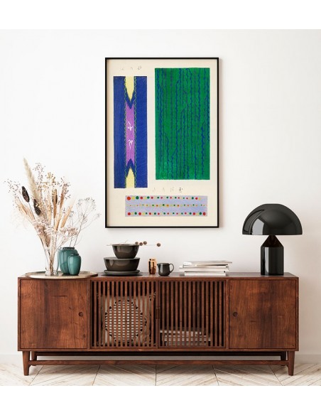 Cuadro de estampado japonés formando cuadrados y rectángulos en varios colores