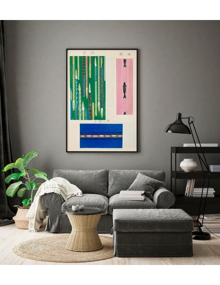 Cuadro de estampado japonés formando cuadrados y rectángulos en varios colores