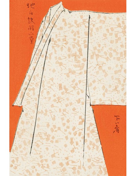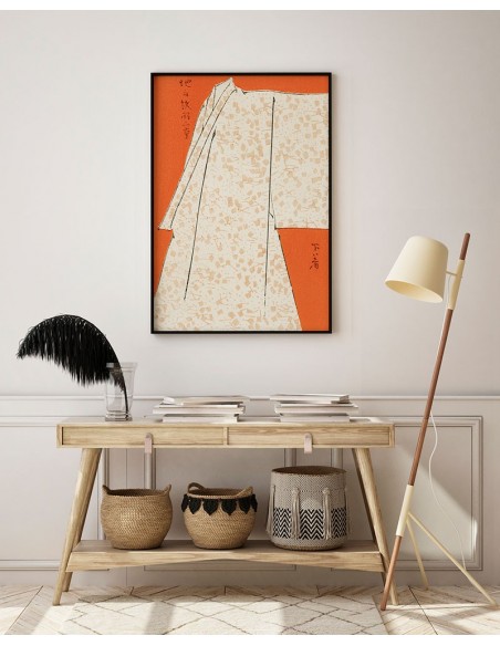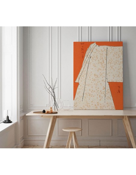 Túnica japonesa estampada sobre fondo color naranja