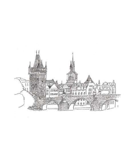 Silueta de paisaje urbano en blanco y negro para los amantes de la arquitectura, realizado por el artista César Ortiz Echagüe.