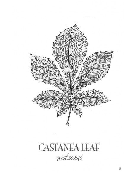 Cuadro de hoja lobulada realizada con tinta negra, reproducción del diseño de César Ortiz Echagüe.