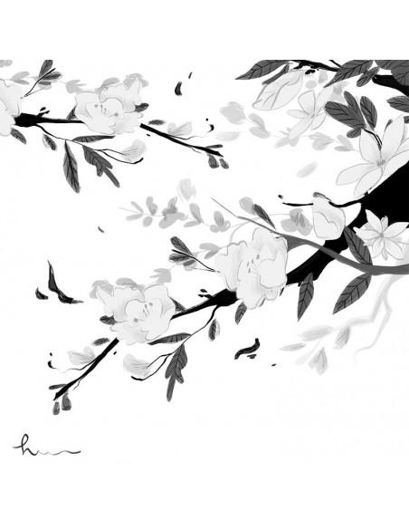 Diseño de flores negras sobre fondo blanco. Reproducción del original de Maria Pareja.
