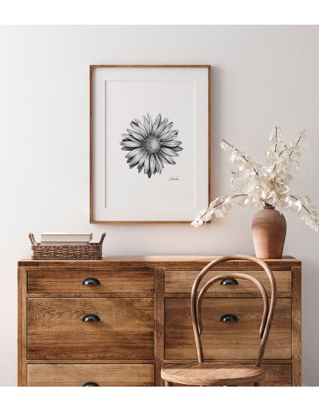 Margarita pintada en blanco y negro diseñada por Marta Gonzalez