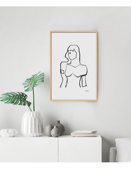 Ilustración de torso de mujer a linea negra. Reproducción del diseño de Bruno Vázquez.