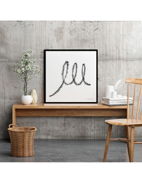 Diseño impreso sobre papel de calidad con tintas ecológicas y respetuosas con el medio ambiente. Enmarcado con una moldura arquitecto de madera natural de Ayous. Lleva Cristal. Fabricado artesalmente en Cuadriman S.L.Limpiar el cristal pasando un trapo ligeramente húmedo. Moldura color plata