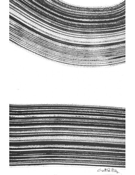 Cuadro abstracto de trazos negros, reproducción del diseño de Marta Castet Bellocq.