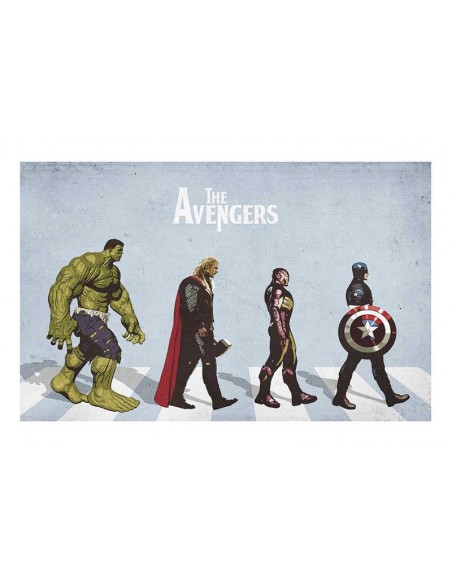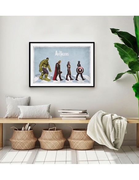 Cuadro para los amantes del cine. Los Vengadores imitando la icónica portada del cruce Abbey Road. Reproducción de la obra de James Lucido.