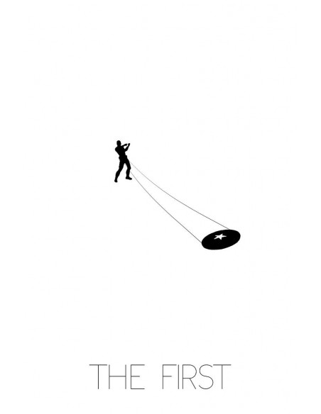 Cuadro de Capitán America en blanco y negro. Un diseño minimalista realizado por James Lucido. Ideal para formar una conjunto de dos o tres de la misma colección.