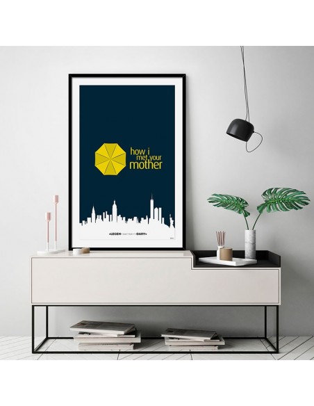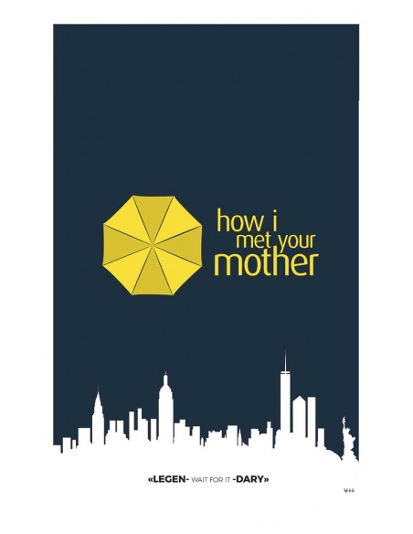 Poster de la Serie Televisiva "How I met your Mother" en color negro y amarillo. Reproducción del diseño de Vincent Hede.