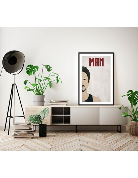 Todo superhéroe tiene una doble identidad. No olvides tu procedencia con el Cuadro de Iron Man. Original composición de solo media cara. Ideal para combinar con el cuadro "Iron Face". Reproducción del diseño de James Lucido.