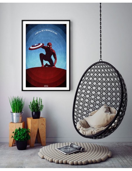 Cuadro del clásico superhéroe Spiderman en tonos azul y rojo para los amantes del cine y las aventuras. Reproducción del diseño de James Lucido.
