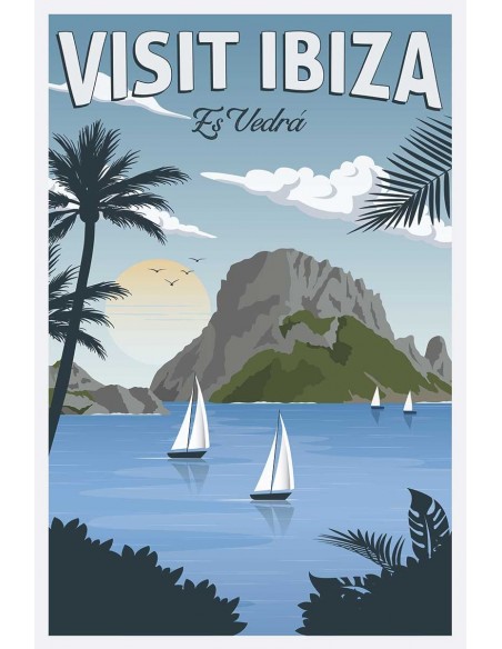 Pocos paisajes naturales tienen la belleza de Es Vedrá, un islote cercano a Ibiza. Vista del islote diseñado por Travel Studio.