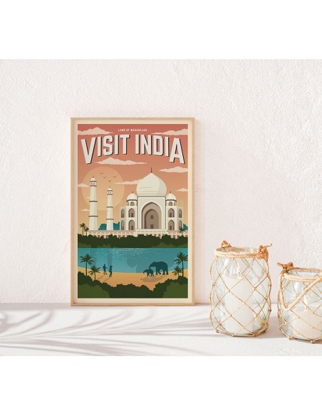Cartel de Taj Mahal en la India. Diseño realizado por Travel Studio. Disponible en varios tamaños y acabados