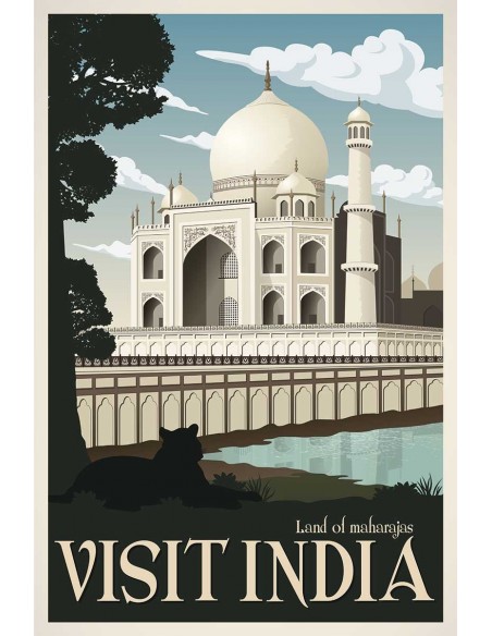 Cartel India 2, con la imponente vista del Taj Mahal en primer plano. Un diseño realizado por Travel Studio para los amantes de la India y su cultura.
