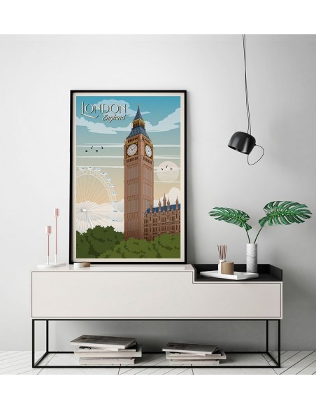 Cartel de Londres con la Torre del reloj en primer plano. Un diseño realizado por Travel Studio. Combinalo con otras ciudades Europeas.