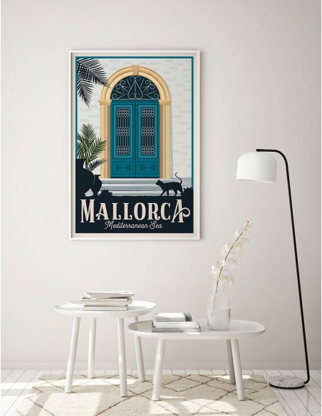 Cartel de puerta con arco de medio punto, ornamentada que recuerda a las islas Baleares. Un cuadro decorativo diseño de Travel Studio