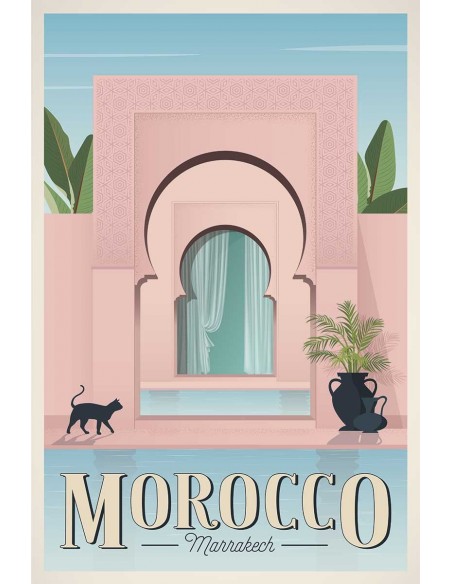 Cartel de fachada estílo árabe en tono rosa. Un diseño de Travel Studio para los amantes de lo oriental.