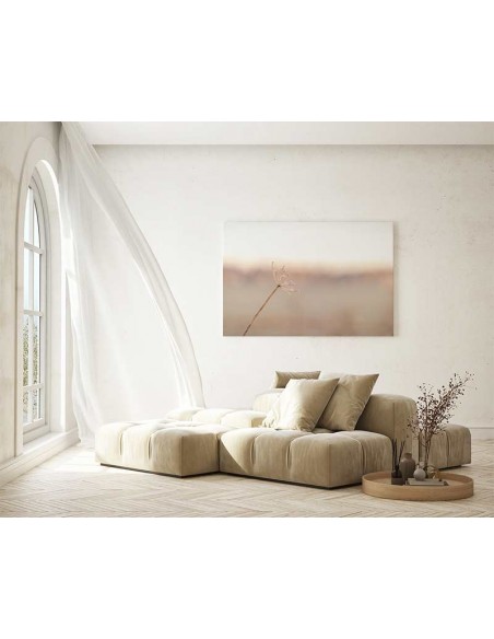 Fotografía de diente de león como único protagonista. Tonos neutros, ideal para decorar estancias con paredes de colores cálidos.