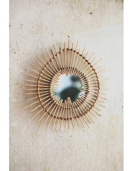 Fotofrafía de un espejo de pared de diseño circular y moderno. Una obra con un toque contemporáneo, ideal para decorar interiores modernos aportando carácter y elegancia. Disponible en varios tamaños y acabados.