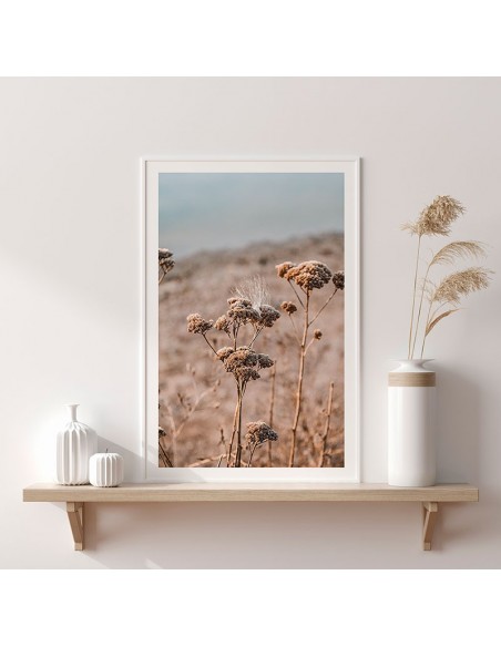 Una fotografía de una flor seca en tonos naturales.
