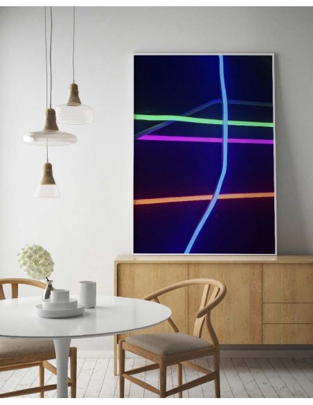 Fotografía de varios neones iluminados de diferentes colores. Disponible en diferentes tamaños y acabados.