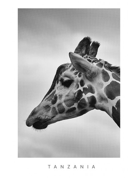 Vista lateral de cabeza de Jirafa en blanco y negro. Para las paredes más salvajes