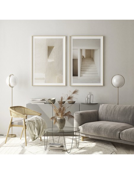 Fotografía cálidade una ventana en tonos pálidos. Un tono muy blanco que aporta equilibrio y serenidad a la vez que elegancia. Un cuadro para aportar profundidad a tu estancia.