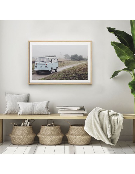 Una autocaravana en tono pastel para los que están deseando echarse a la carretera a vivir aventuras. Combina este cuadro con los modelos de la Colección Fotografía.