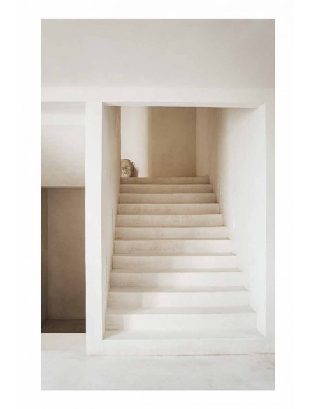 Fotografía cálida del hueco de la escalera en tonos pálidos. Un tono muy blanco que aporta equilibrio y serenidad a la vez que elegancia. Un cuadro para aportar profundidad a tu estancia.