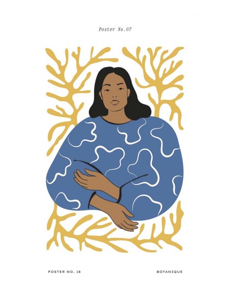 Ilustración de Mujer exótica en tono azul . Un estilo minimalista que realza los tonos planos de la ilutración. Ideal para formar collage