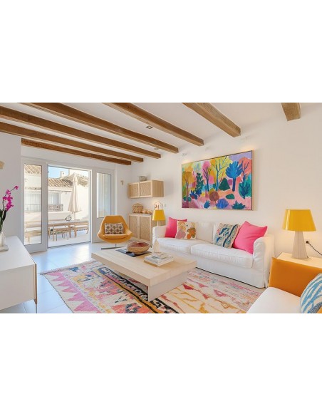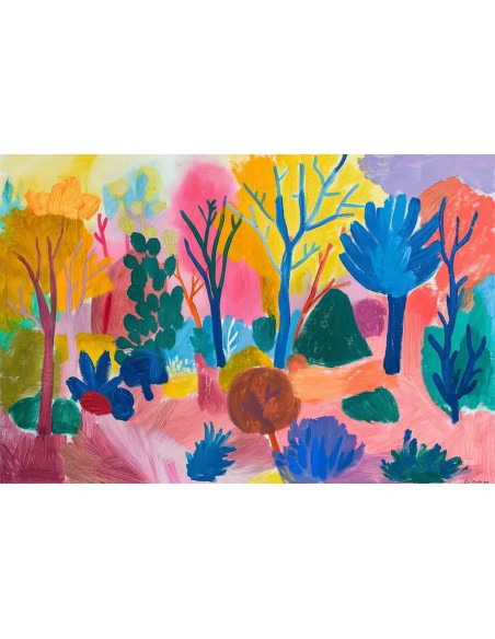 Estética moderna abstracta de un bosque. Ideal para cualquier ambiente. Uso de colores alegres. Disponible en diferentes tamaños y acabados. Perfecto para combinar con otros diseños de la misma colección.