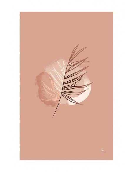 Una ilustración de la silueta de una hoja sobre un fondo coral. Un diseño minimalista, reproducción de la obra de Christine Kapa.